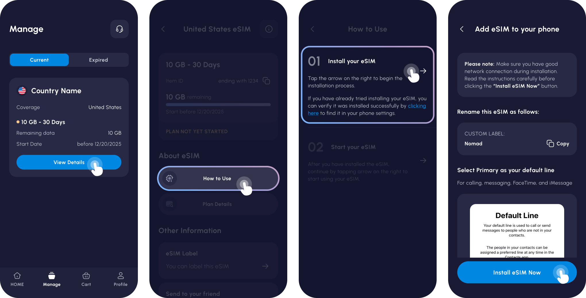1Go to the Manage eSIM page in your Nomad iOS or Android app