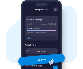 Please note that add-ons can only be bought when your eSIM has not expired and when your current data plan is not used up. Make sure to add more data in advance.